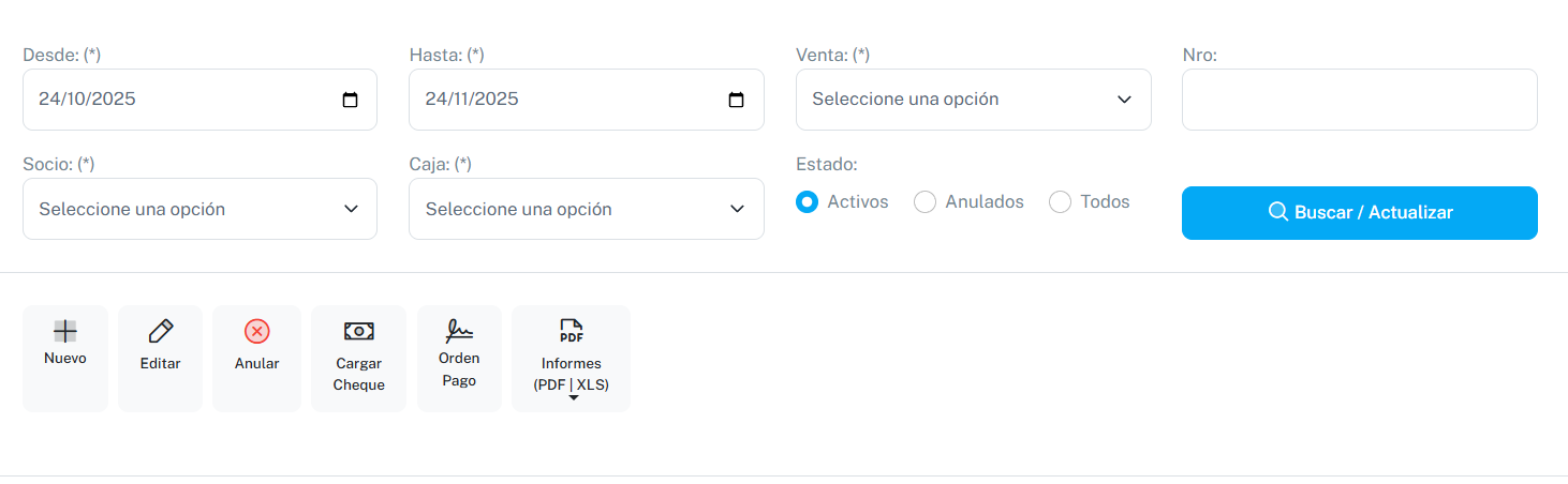En esta sección se detallarán los movimientos de egresos, ya sean de retiro personal, venta o devolución de préstamos entre los socios.