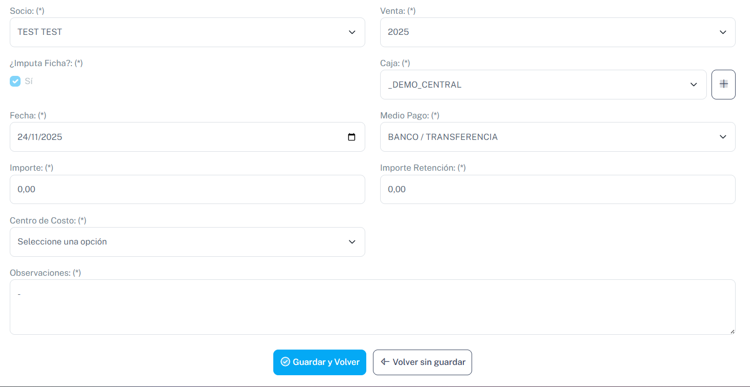 Seguido, completamos los campos obligatorios que nos figurarán y finalizamos dando clic en Guardar y Volver.