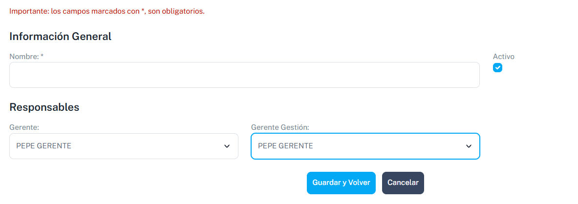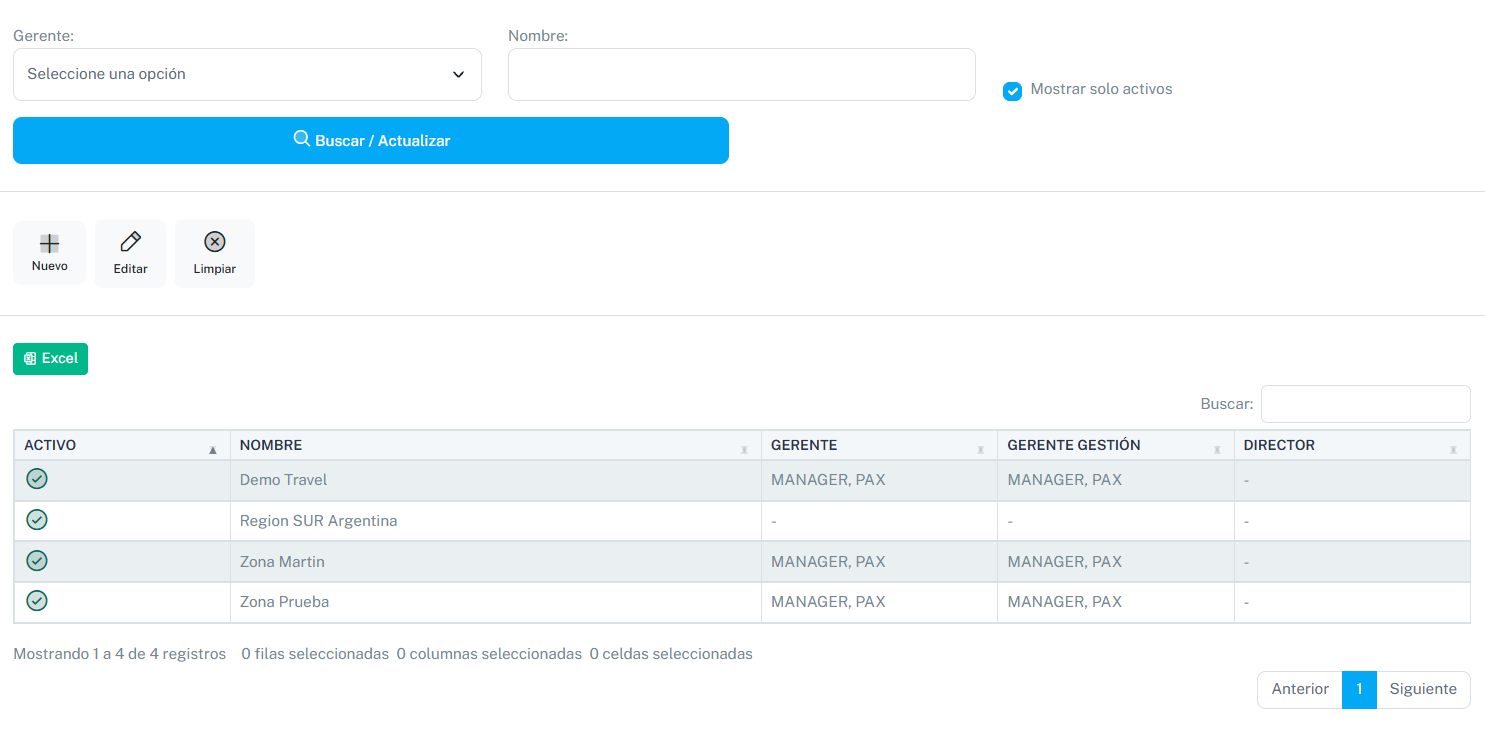 Dentro de la Gestión de Regiones Comerciales, tendremos la posibilidad de crear nuevas regiones y asociarla a los gerentes,