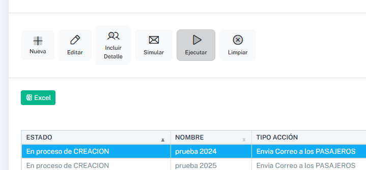 Una vez esté todo listo, podemos hacer clic en el botón Ejecutar Envío de Correos. Dependiendo de la cantidad de pasajeros asociados, este proceso puede tardar un poco en ejecutarse