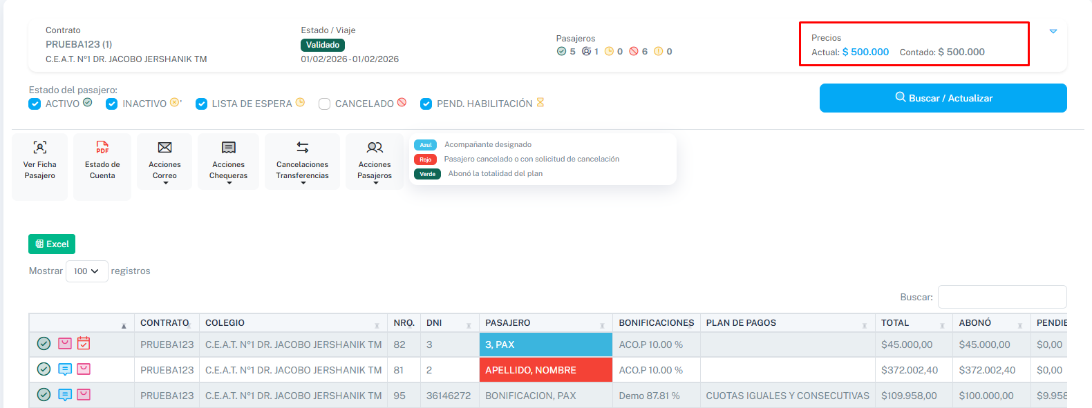 Una vez realizados los cambios, dentro del Estado de Cuenta del contrato podremos ver como se realizó el cambio en la parte superior derecha de la ventana.