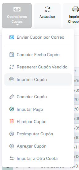 Dependiendo de los permisos habilitados para el usuario, se podrán realizar distintas acciones en las cuotas.