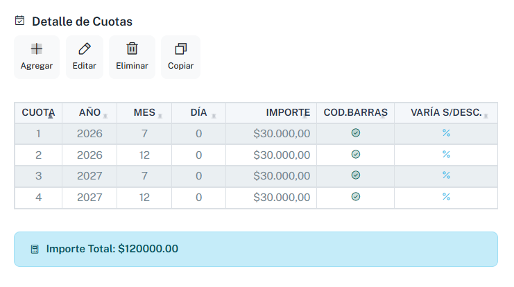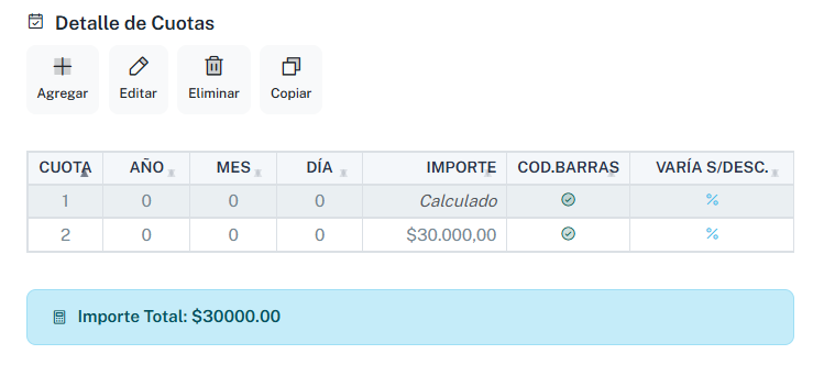 Para automatizar las cuotas dejamos en