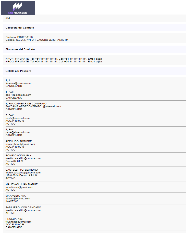 Desde la búsqueda de contratos, encontraremos el botón Email a Firmantes donde podremos enviar campañas a los contratos. Esto se hace de forma individual, con la finalidad de poder trabajar en un destino o punto de venta particular.